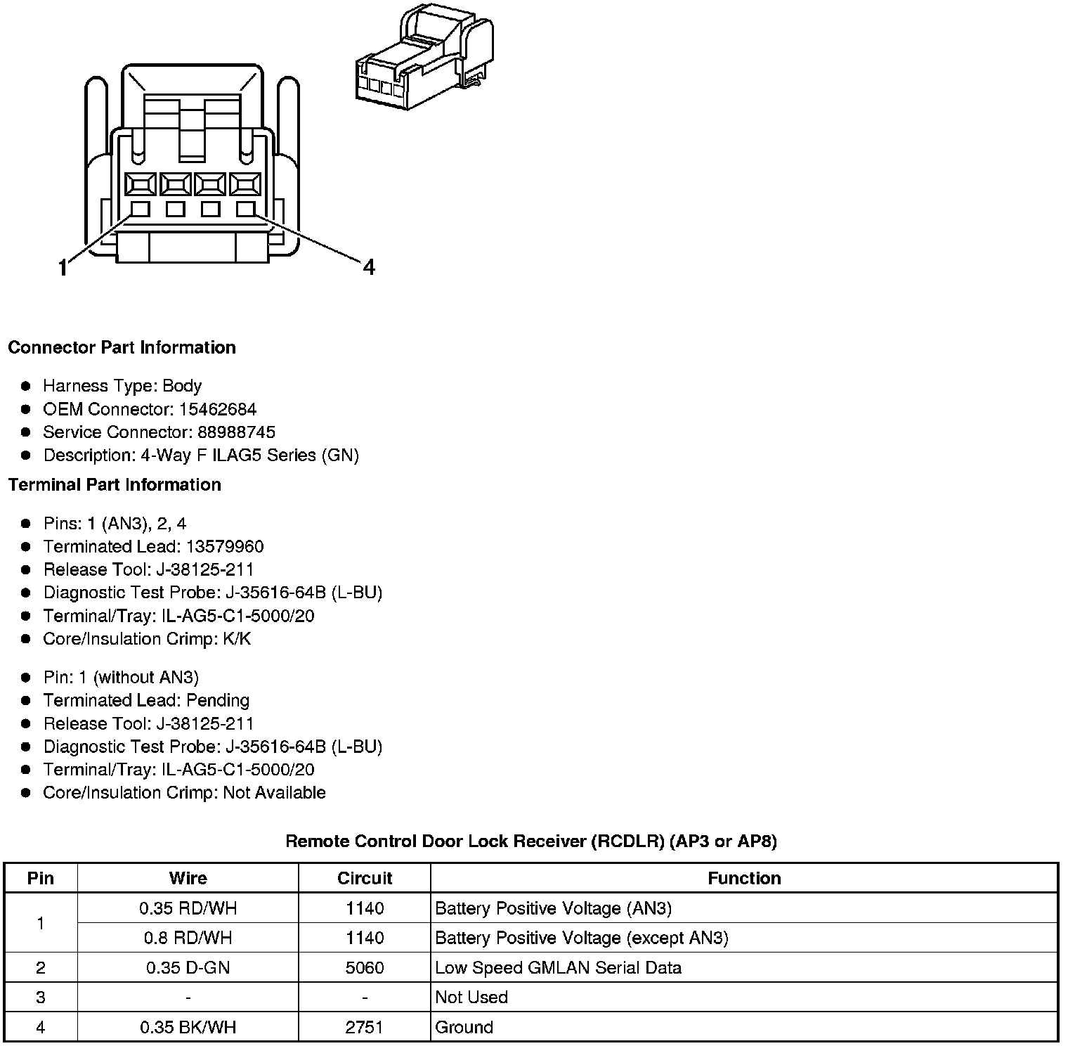 Remote Control Door Lock Receiver (RCDLR) (AP3 or AP8)