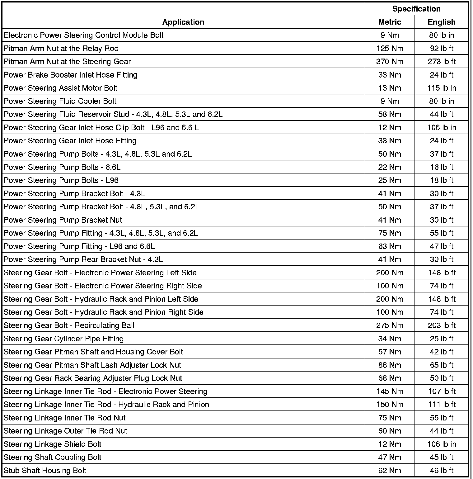 Fastener Tightening Specifications