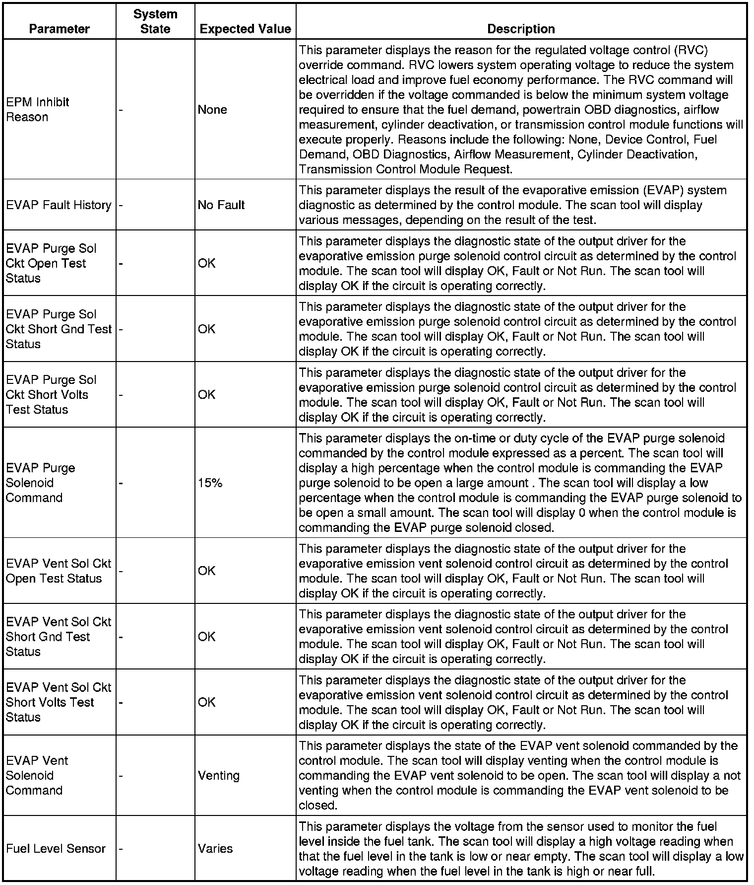 The scan tool values from a properly running engine may be used for comparison with the engine you are diagnosing. The engine scan tool data list represents values that would be seen on a normally running engine.