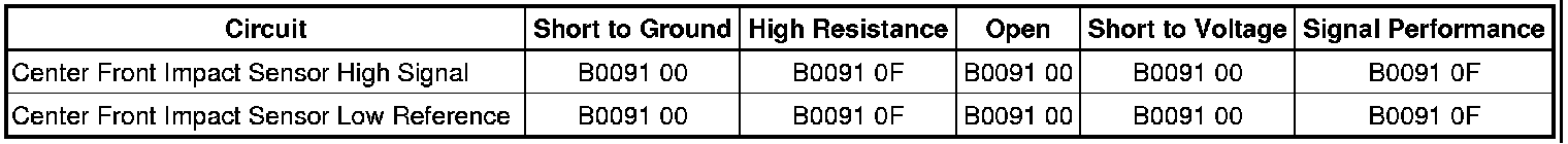 * The front impact sensor has an open, been shorted to ground, or been shorted to voltage.