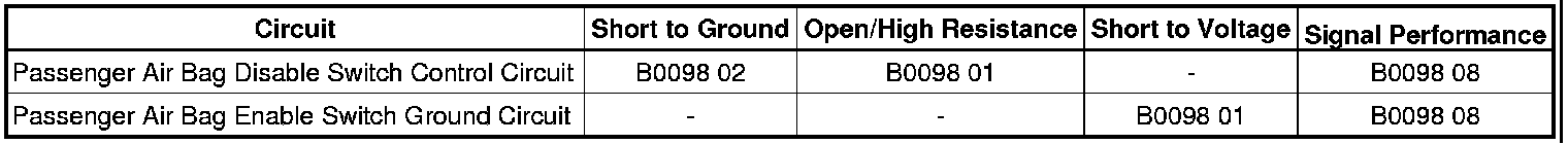 - Passenger Air Bag Disable Switch Circuit Short to Battery or Open
