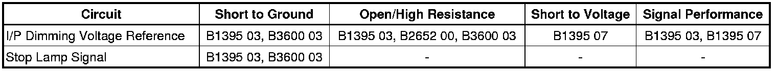 4. Ignition ON, test for B+ between the I/P dimming voltage reference circuit terminal 15 and ground.