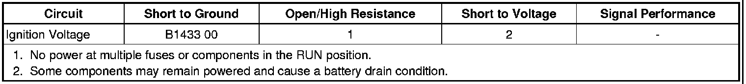 2. Test for greater than infinite resistance between the BCM ignition circuit terminal 13 and ground.