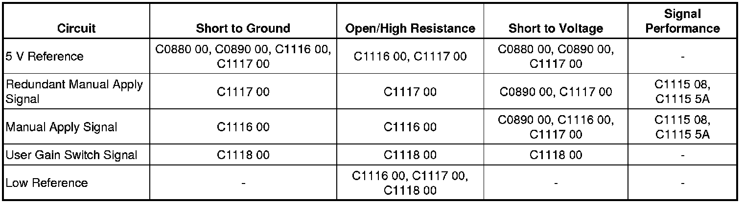 * The fuel pump/trailer brake control module detects a short to ground, open or a short to voltage on the redundant manual apply signal circuit.