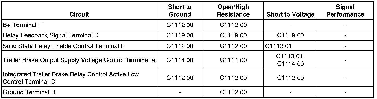 - Trailer Brake Control Relay High Control Circuit Short to Battery