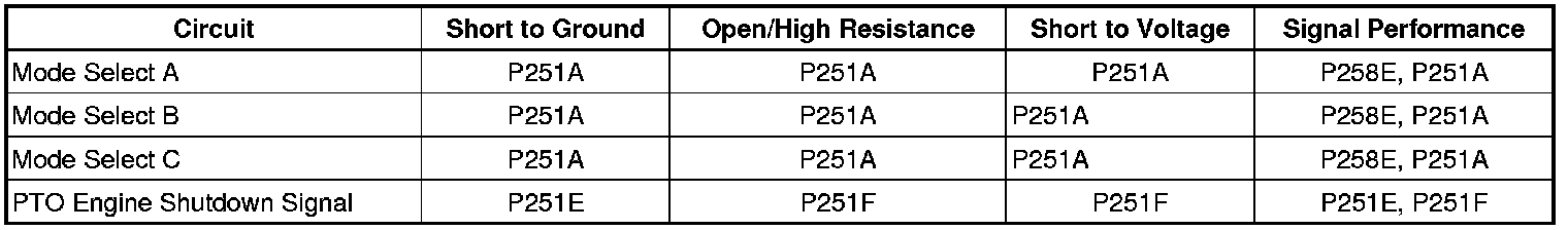 * The PTOM detects a high voltage signal on one or more of the in-cab PTO switch circuits: SET -, RES +, 1 or 0.