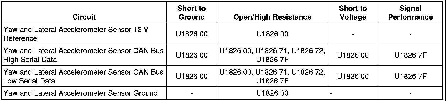 * Yaw and Lateral Accelerometer Sensor serial data circuit terminal 3 and EBCM serial data circuit terminal 24