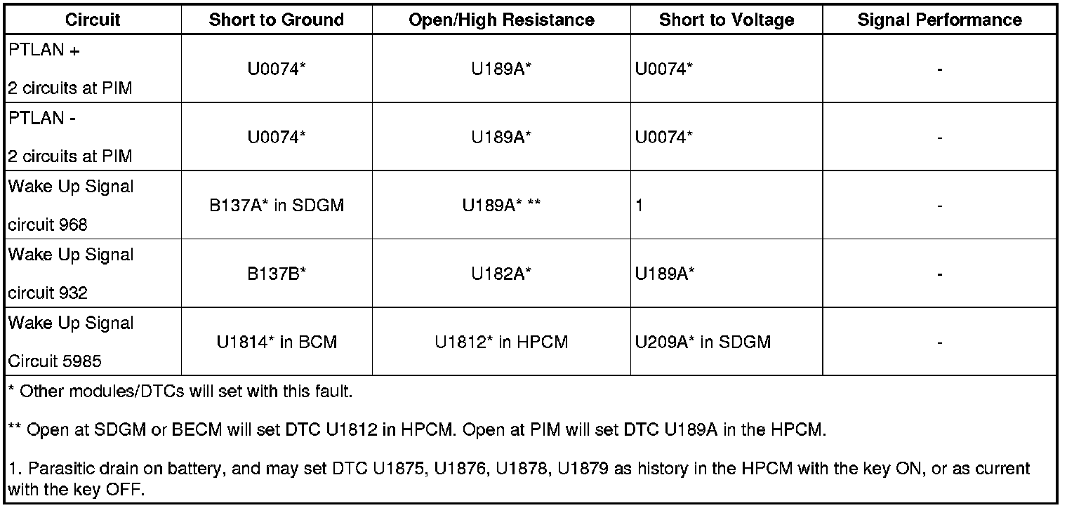 * Circuits to the HPCM are diagnosed only to the PIM connector because the HPCM is replaced as part of the PIM.