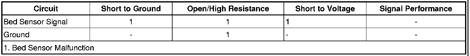 4. If all circuits test normal, test or replace the bed sensor.
