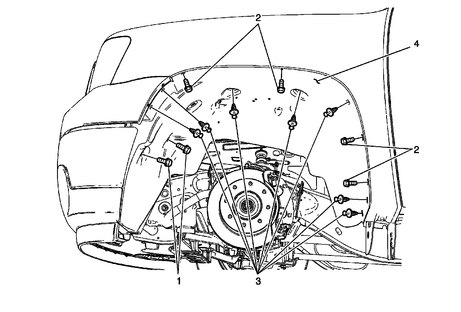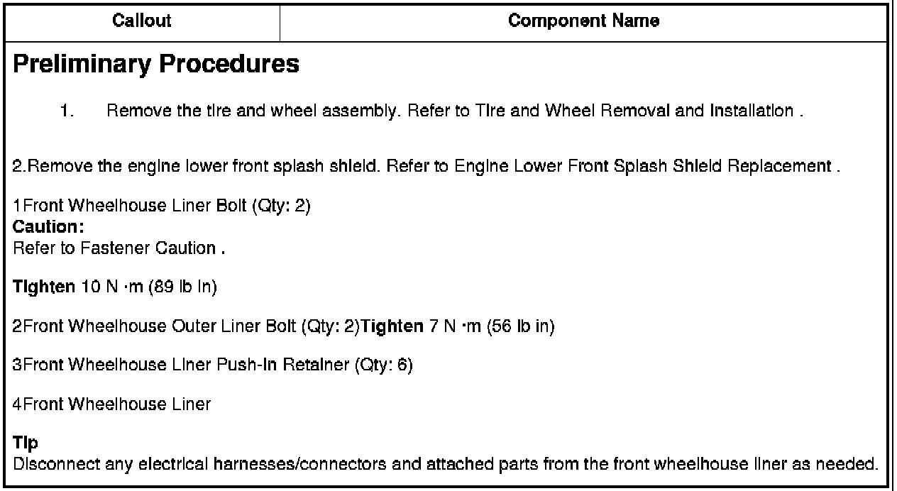 2Front Wheelhouse Outer Liner Bolt (Qty: 2)Tighten 7 N �m (56 lb in)