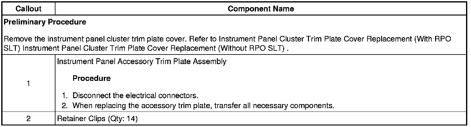 Instrument Panel Accessory Trim Plate Replacement (without RPO SLT)