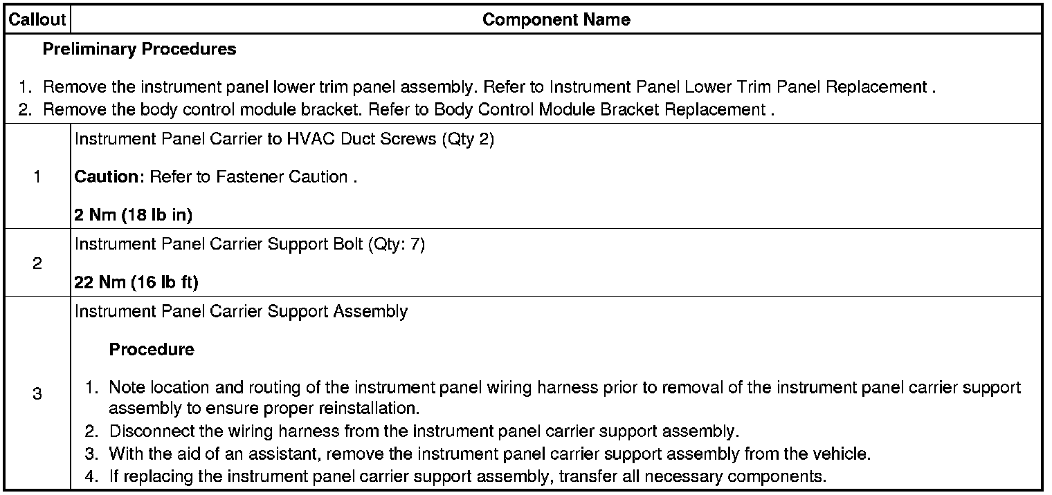 Instrument Panel Carrier Support Replacement (Without RPO SLT)