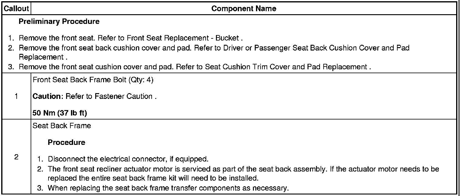 Driver or Passenger Seat Back Cushion Frame Replacement
