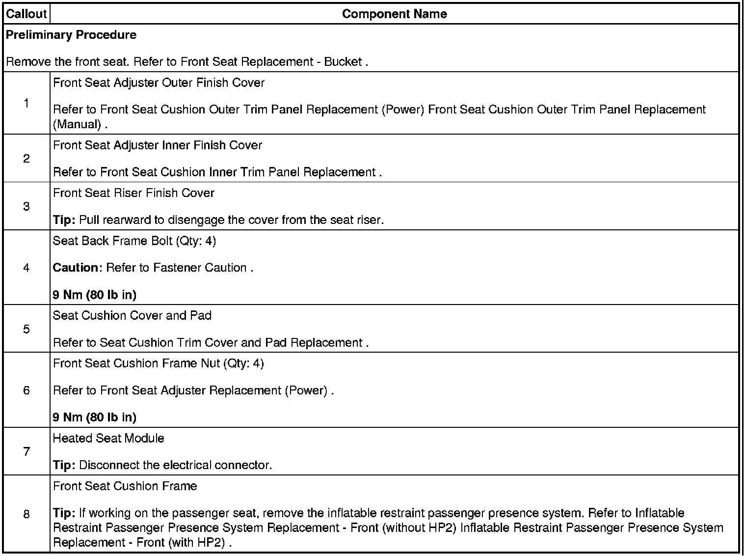 Driver or Passenger Seat Cushion Frame Replacement