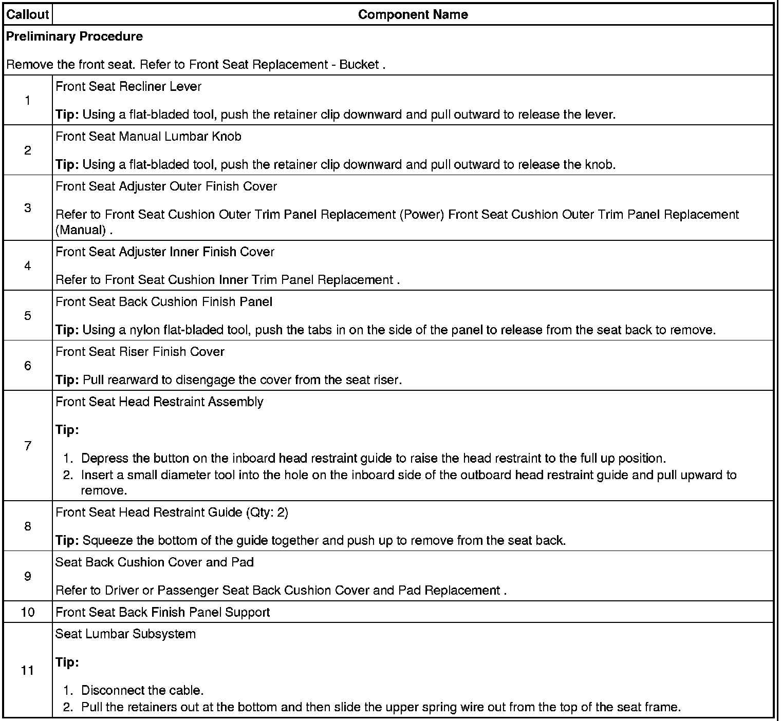 Driver or Passenger Seat Lumbar Support Replacement (Manual)