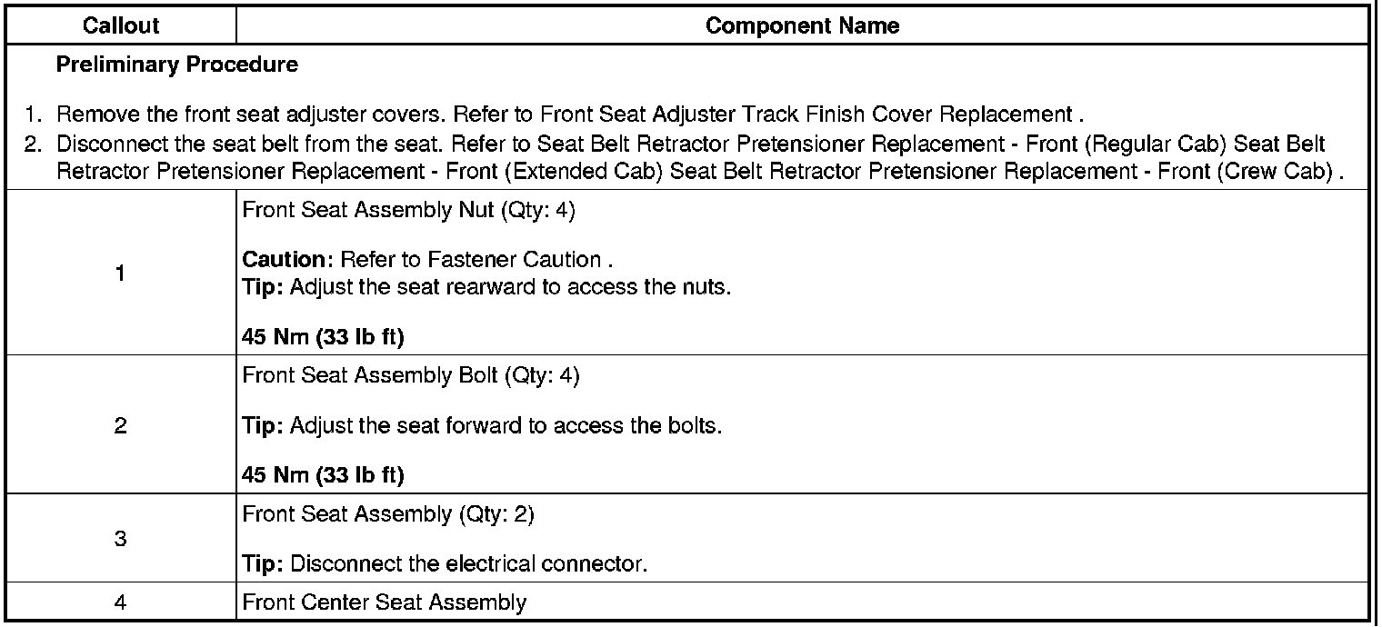 Front Center Seat Replacement