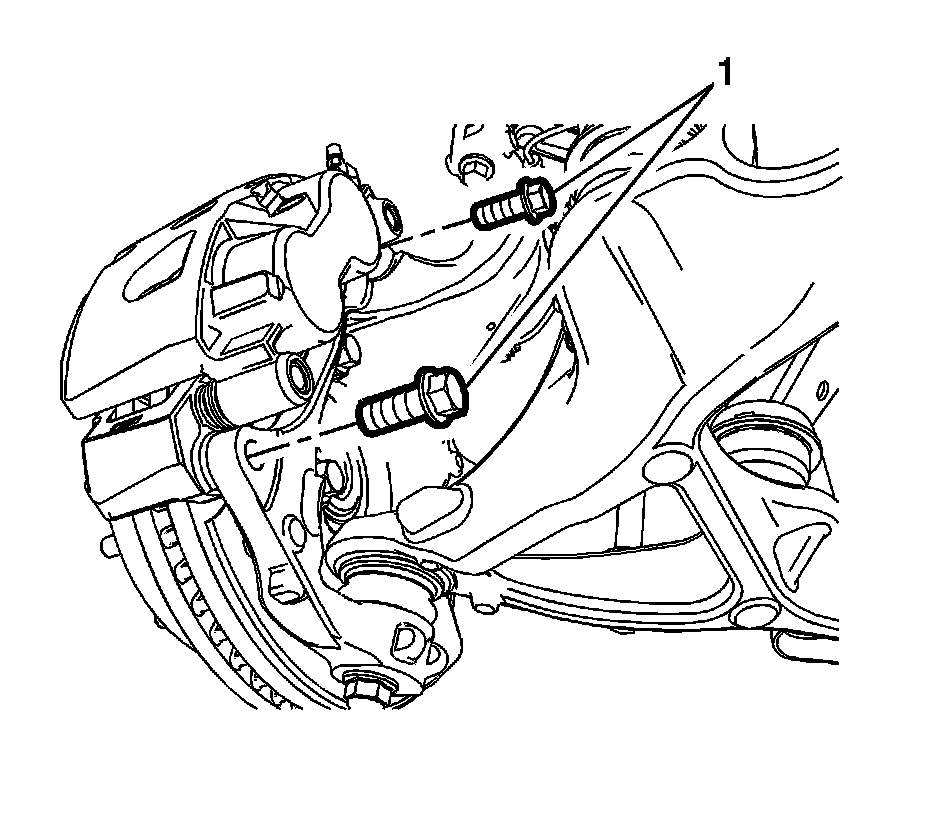 10. Remove the brake caliper bracket bolts (1).