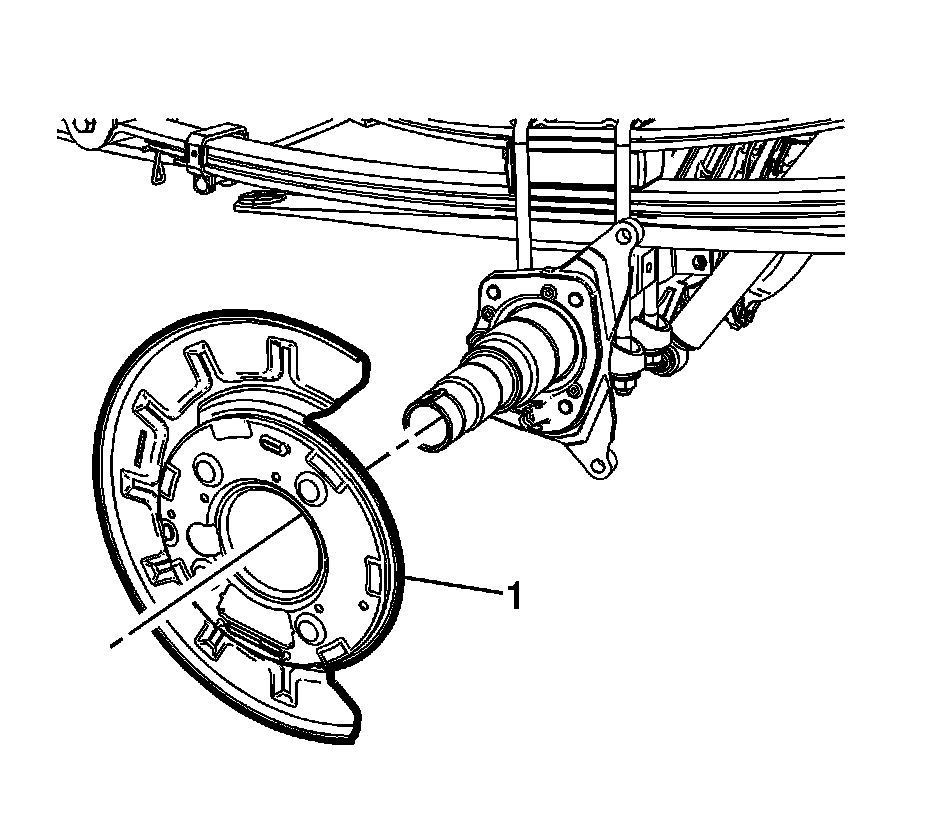 2. Install the rear brake backing plate (1).
