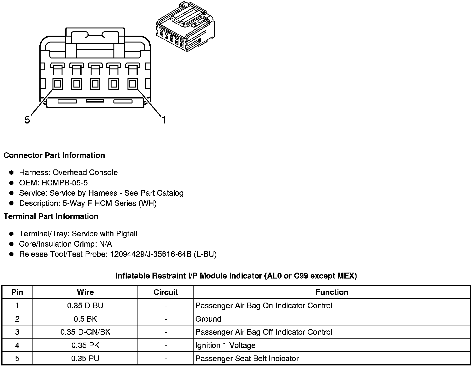 Inflatable Restraint I/P Module Indicator (AL0 or C99 except MEX)