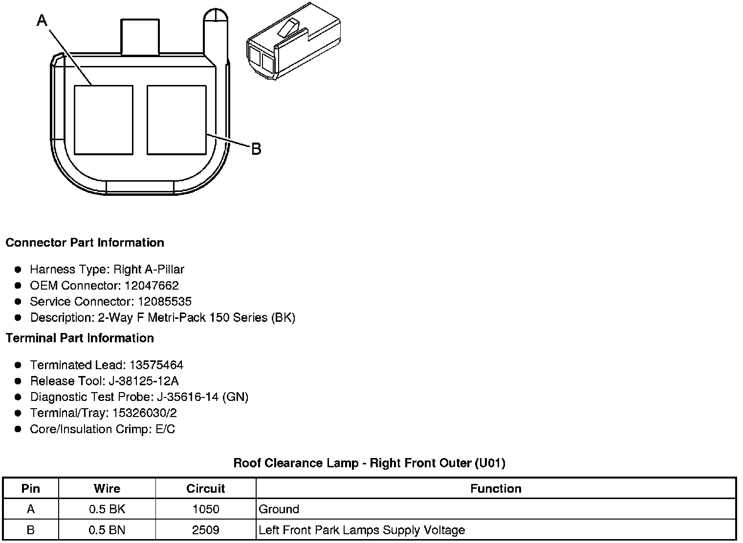 Roof Clearance Lamp - Right Front Outer (U01)