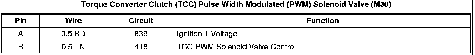 Torque Converter Clutch (TCC) Pulse Width Modulated (PWM) Solenoid Valve (M30)