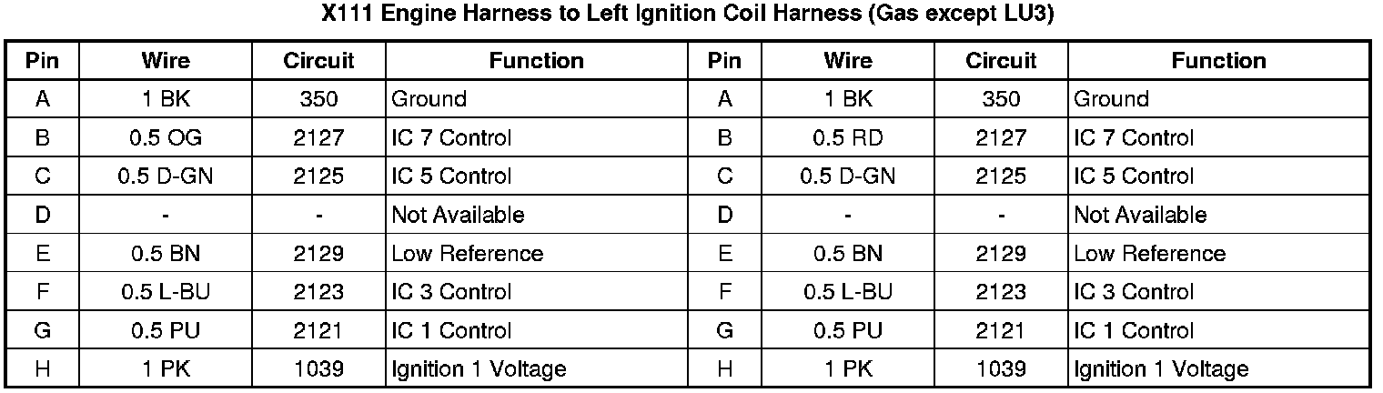 X111 Engine Harness to Left Ignition Coil Harness (Gas except LU3)