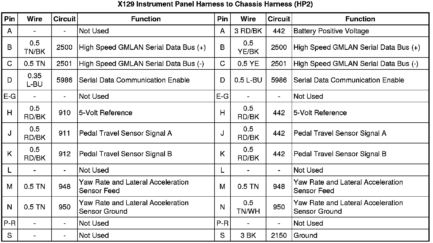 X129 Instrument Panel Harness to Chassis Harness (HP2)