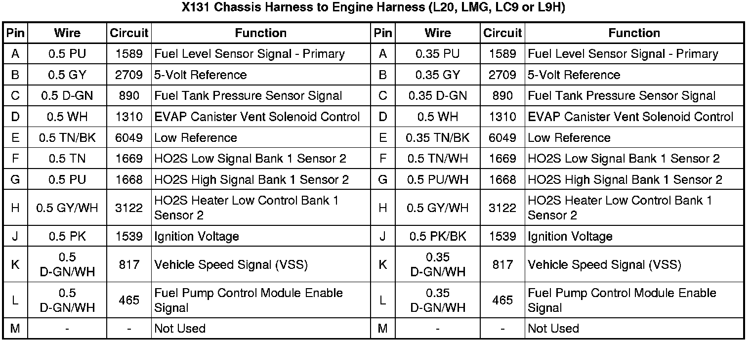 X131 Chassis Harness to Engine Harness (L20, LMG, LC9 or L9H)
