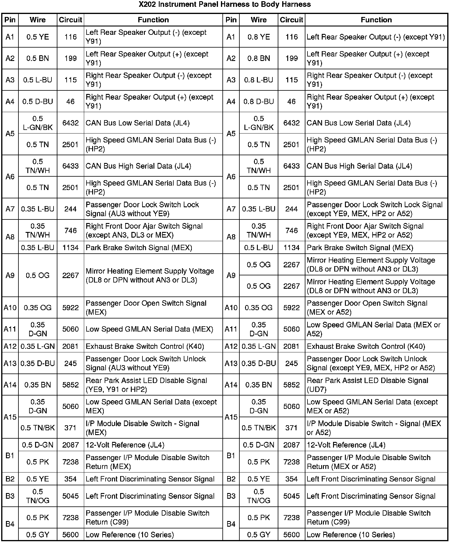 X202 Instrument Panel Harness to Body Harness