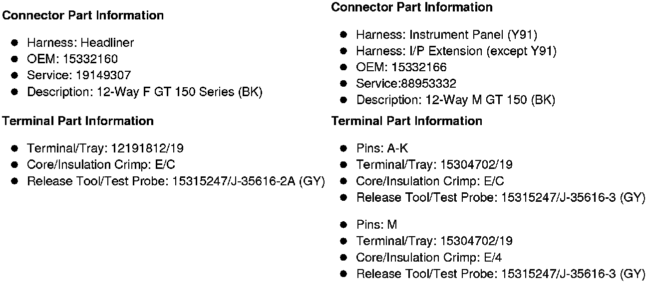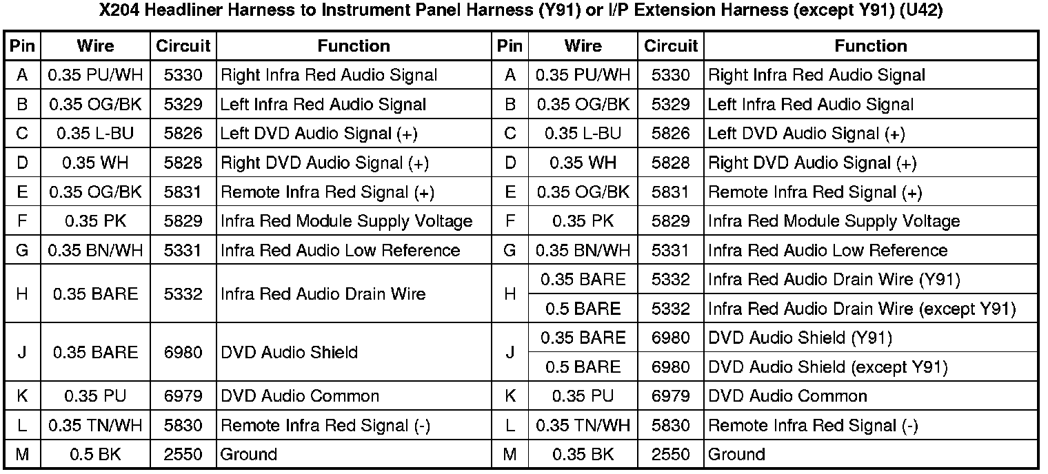 X204 Headliner Harness to Instrument Panel Harness (Y91) or I/P Extension Harness (except Y91) (U42)