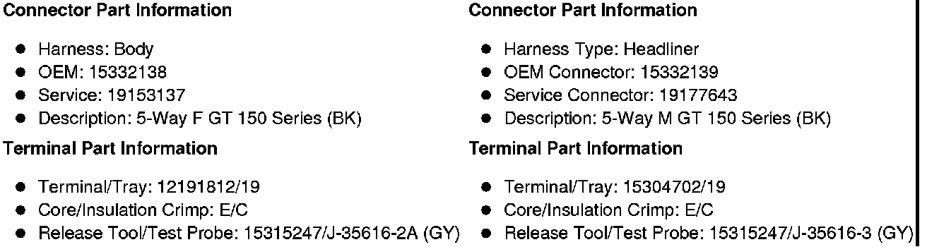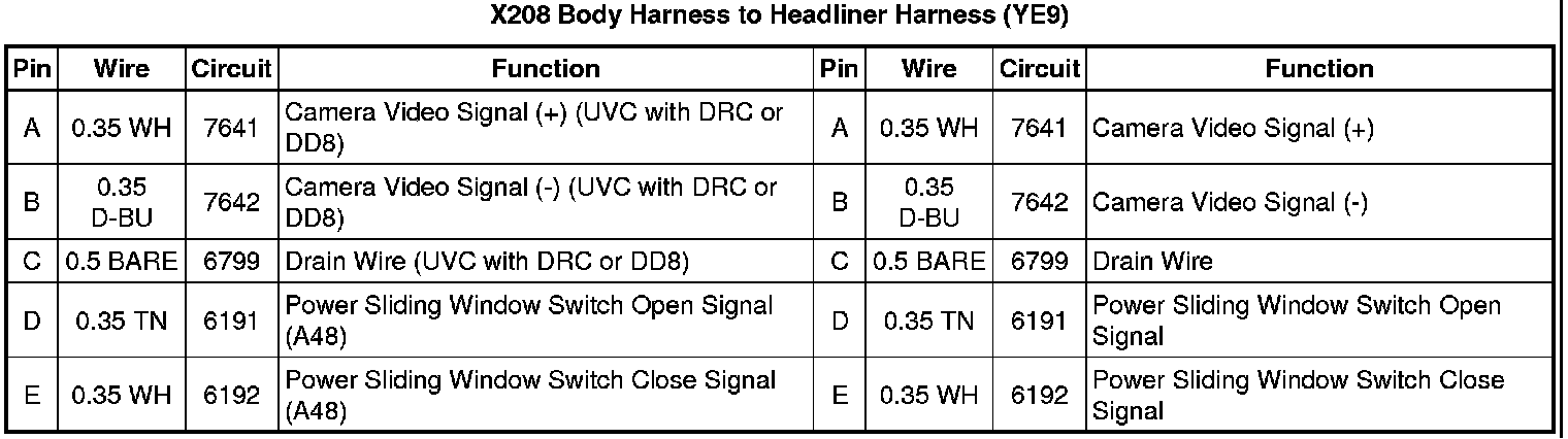 X208 Body Harness to Headliner Harness (YE9)