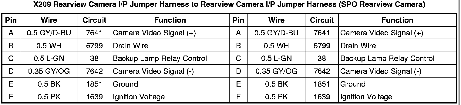 X209 Rearview Camera I/P Jumper Harness to Rearview Camera I/P Jumper Harness (SPO Rearview Camera)