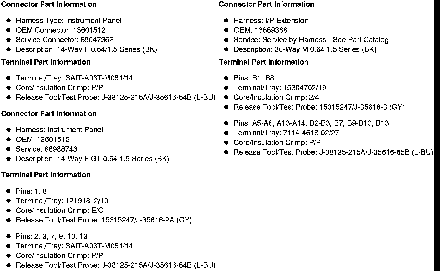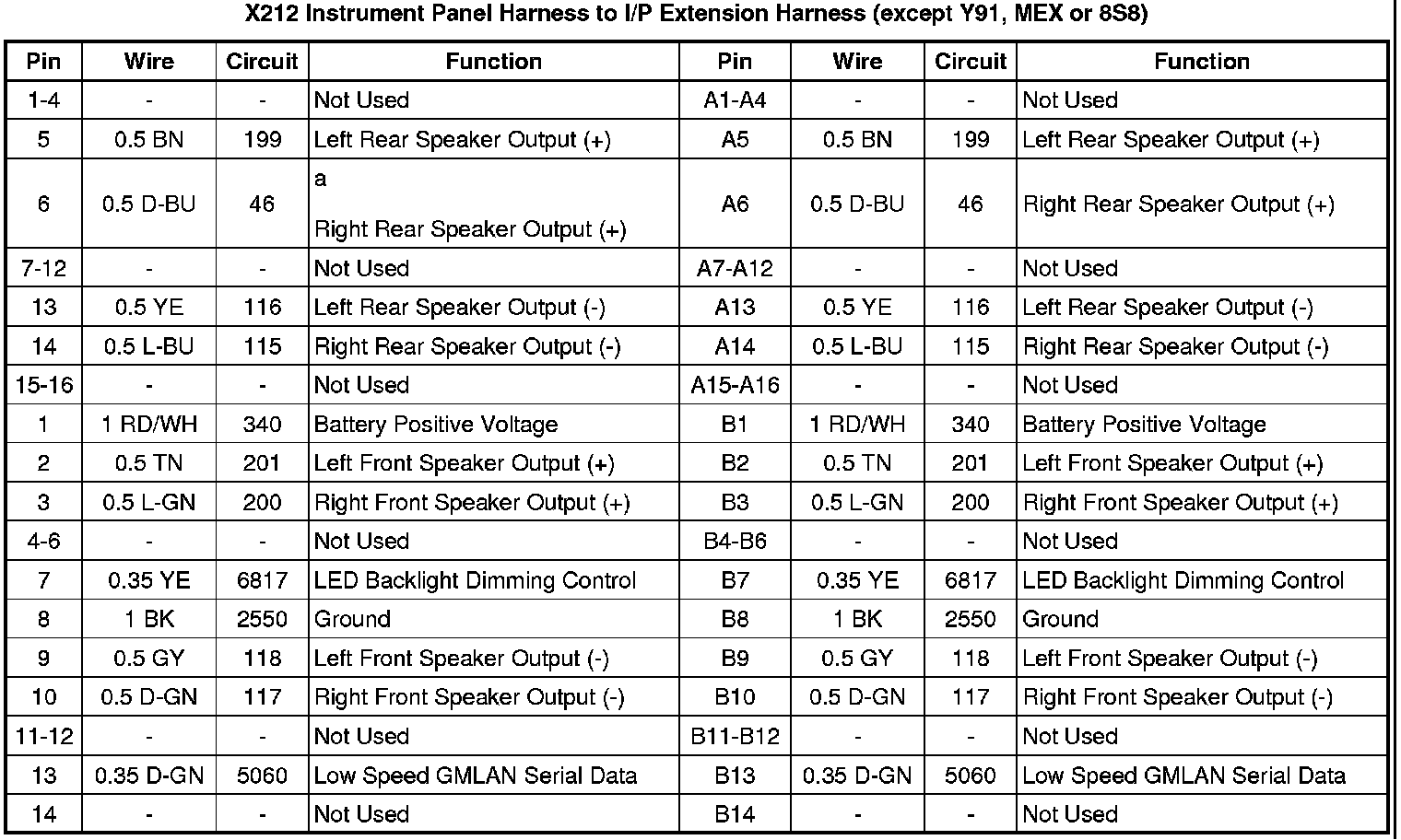 X212 Instrument Panel Harness to I/P Extension Harness (except Y91, MEX or 8S8)