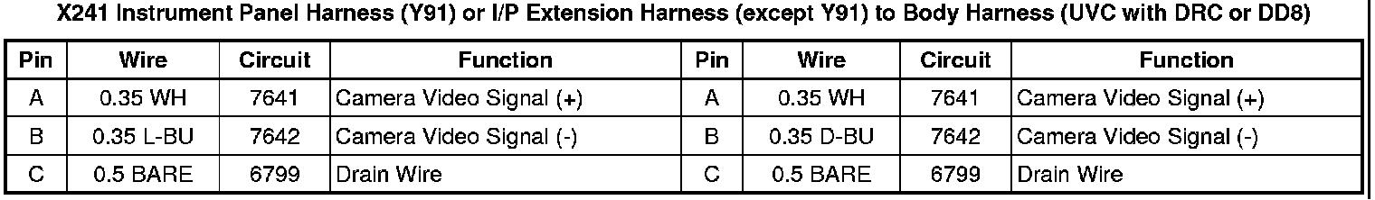 X241 Instrument Panel Harness (Y91) or I/P Extension Harness (except Y91) to Body Harness (UVC with DRC or DD8)