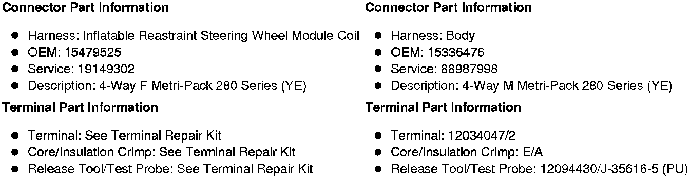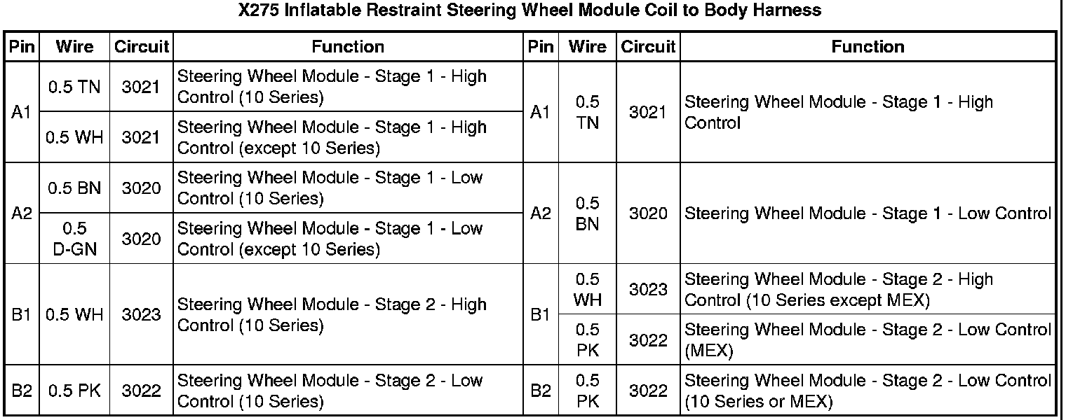 X275 Inflatable Restraint Steering Wheel Module Coil to Body Harness