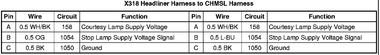 X318 Headliner Harness to CHMSL Harness