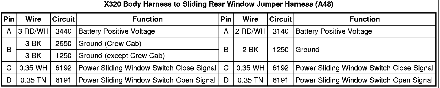 X320 Body Harness to Sliding Rear Window Jumper Harness (A48)