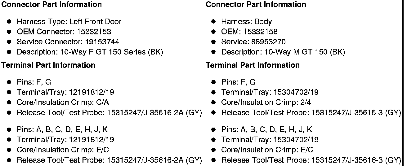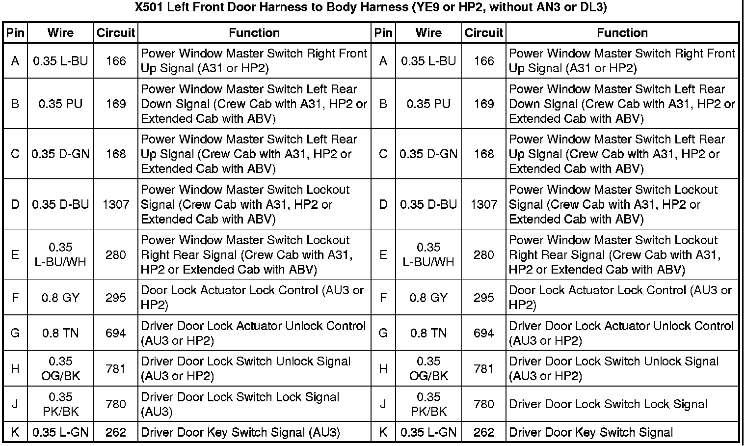 X501 Left Front Door Harness to Body Harness (YE9 or HP2, without AN3 or DL3)