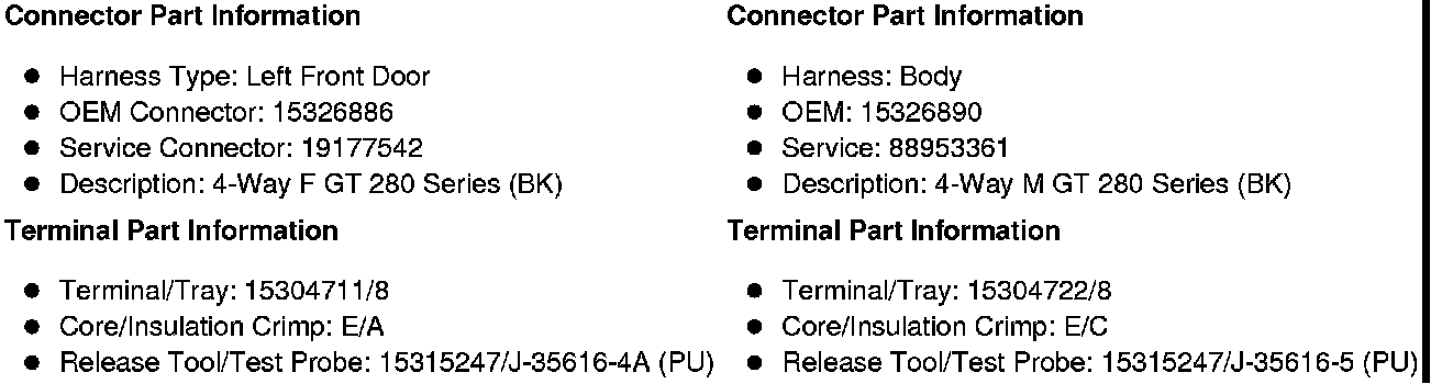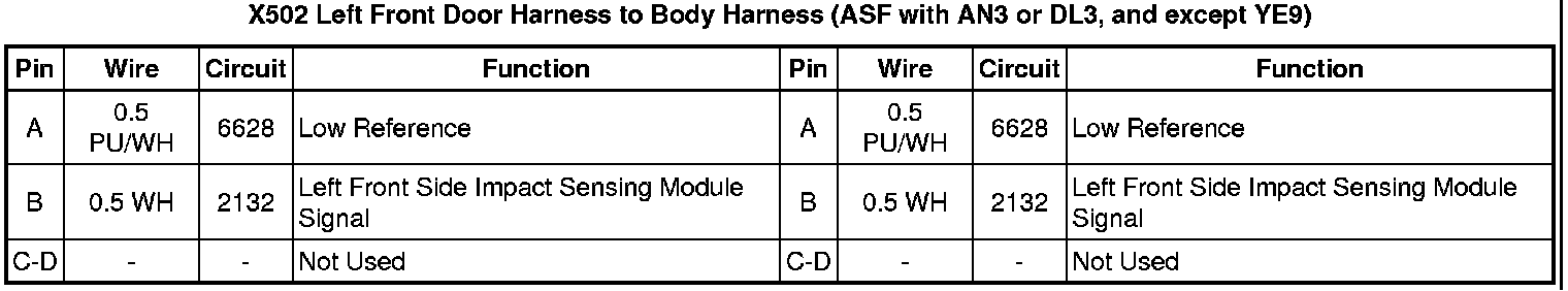 X502 Left Front Door Harness to Body Harness (ASF with AN3 or DL3, and except YE9)
