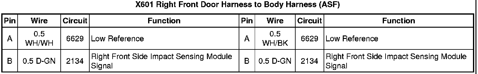 X601 Right Front Door Harness to Body Harness (ASF)
