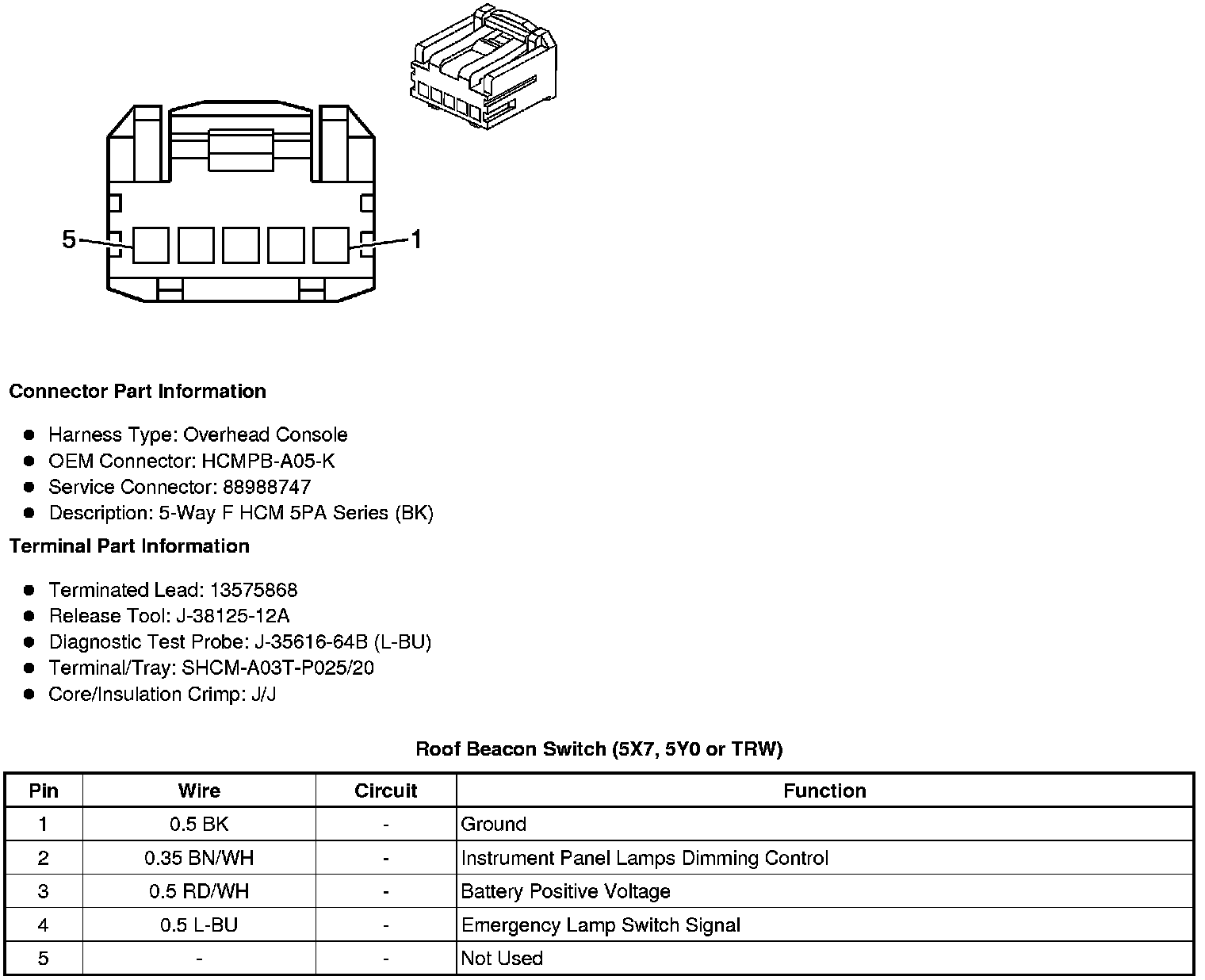Roof Beacon Switch (5X7, 5Y0 or TRW)