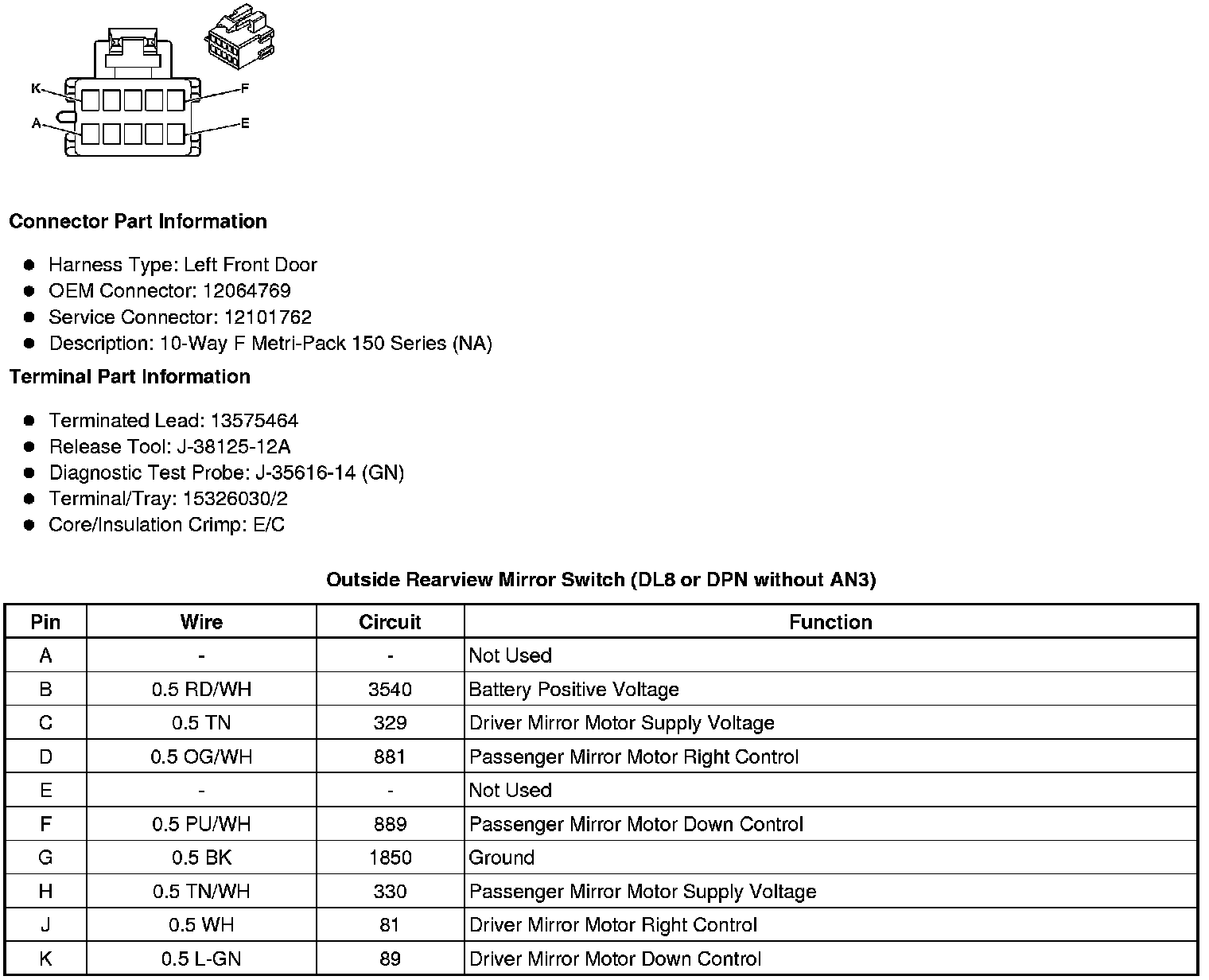 Outside Rearview Mirror Switch (DL8 or DPN without AN3)
