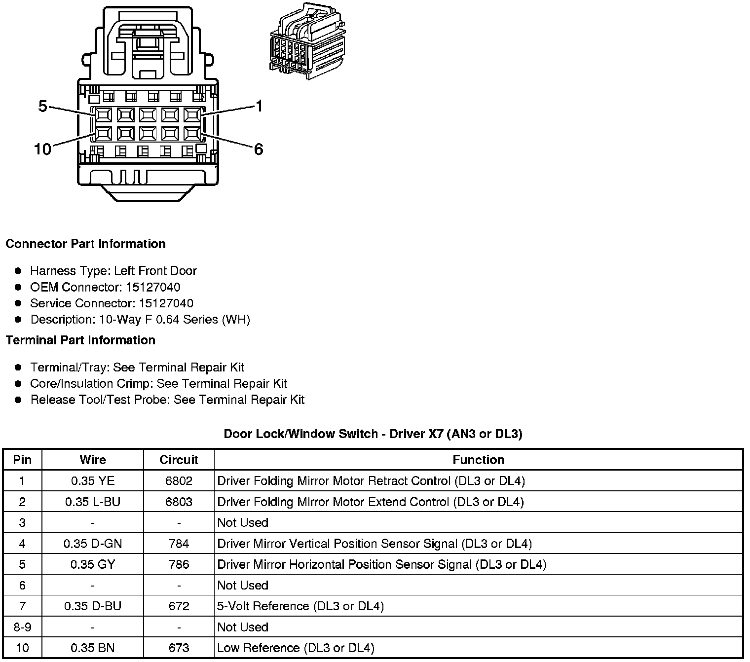 Door Lock/Window Switch - Driver X7 (AN3 or DL3)