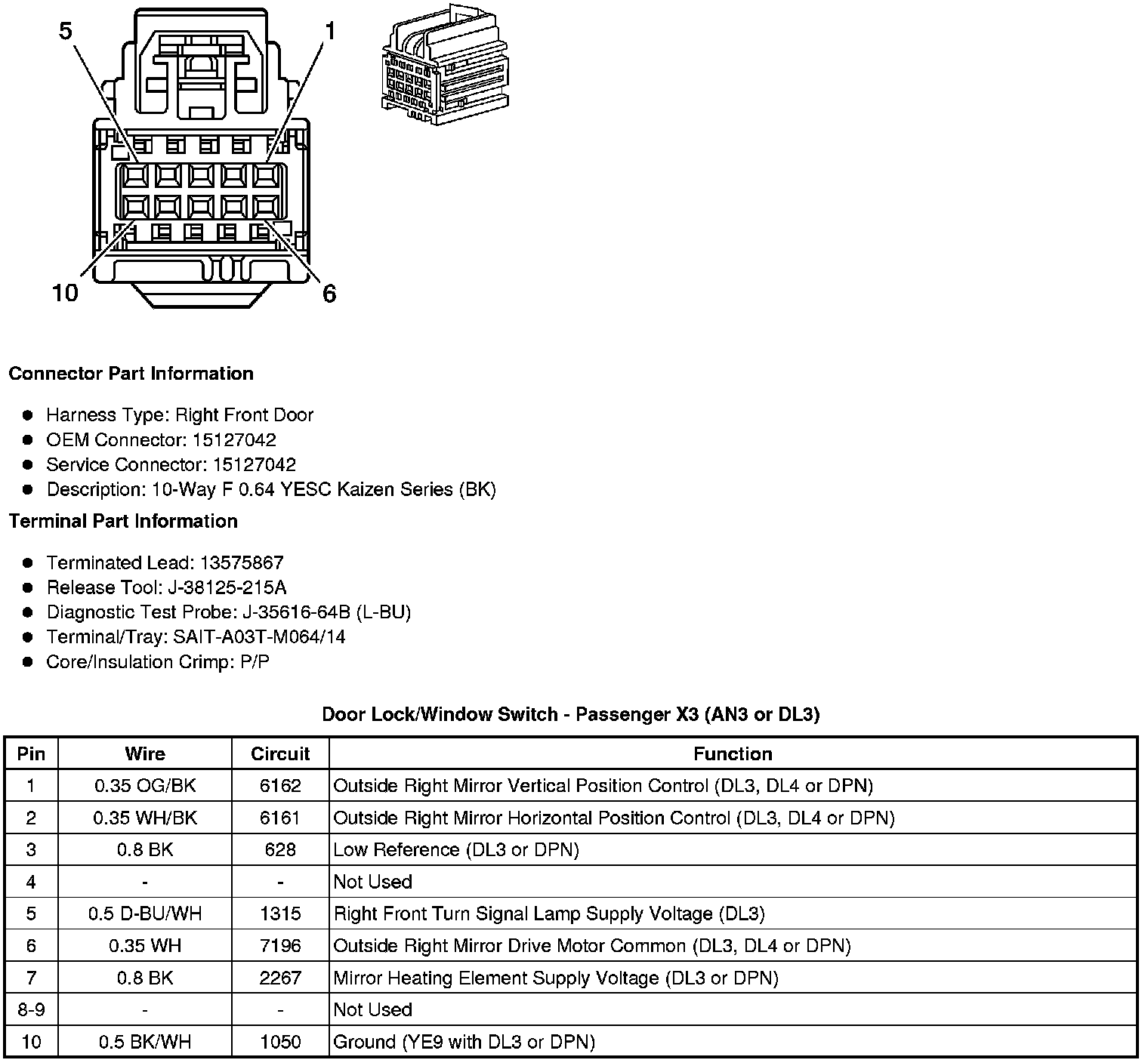 Door Lock/Window Switch - Passenger X3 (AN3 or DL3)