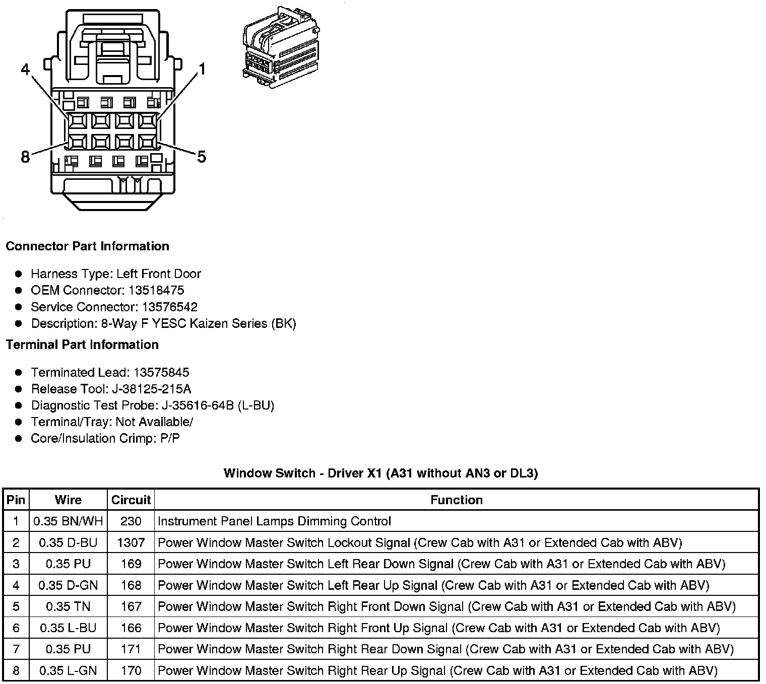 Window Switch - Driver X1 (A31 without AN3 or DL3)