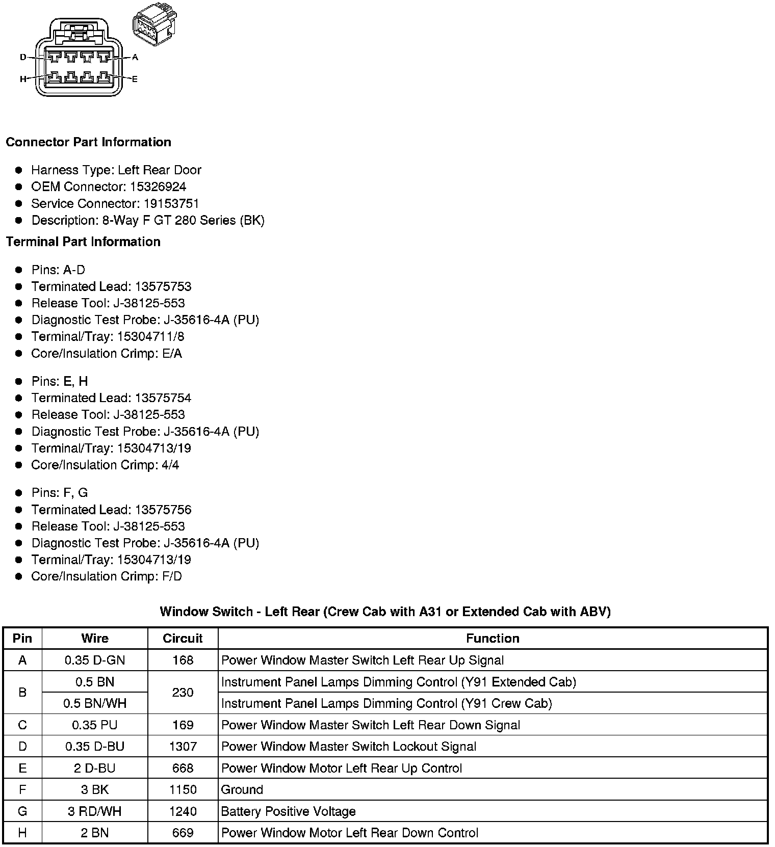 Window Switch - Left Rear (Crew Cab with A31 or Extended Cab with ABV)