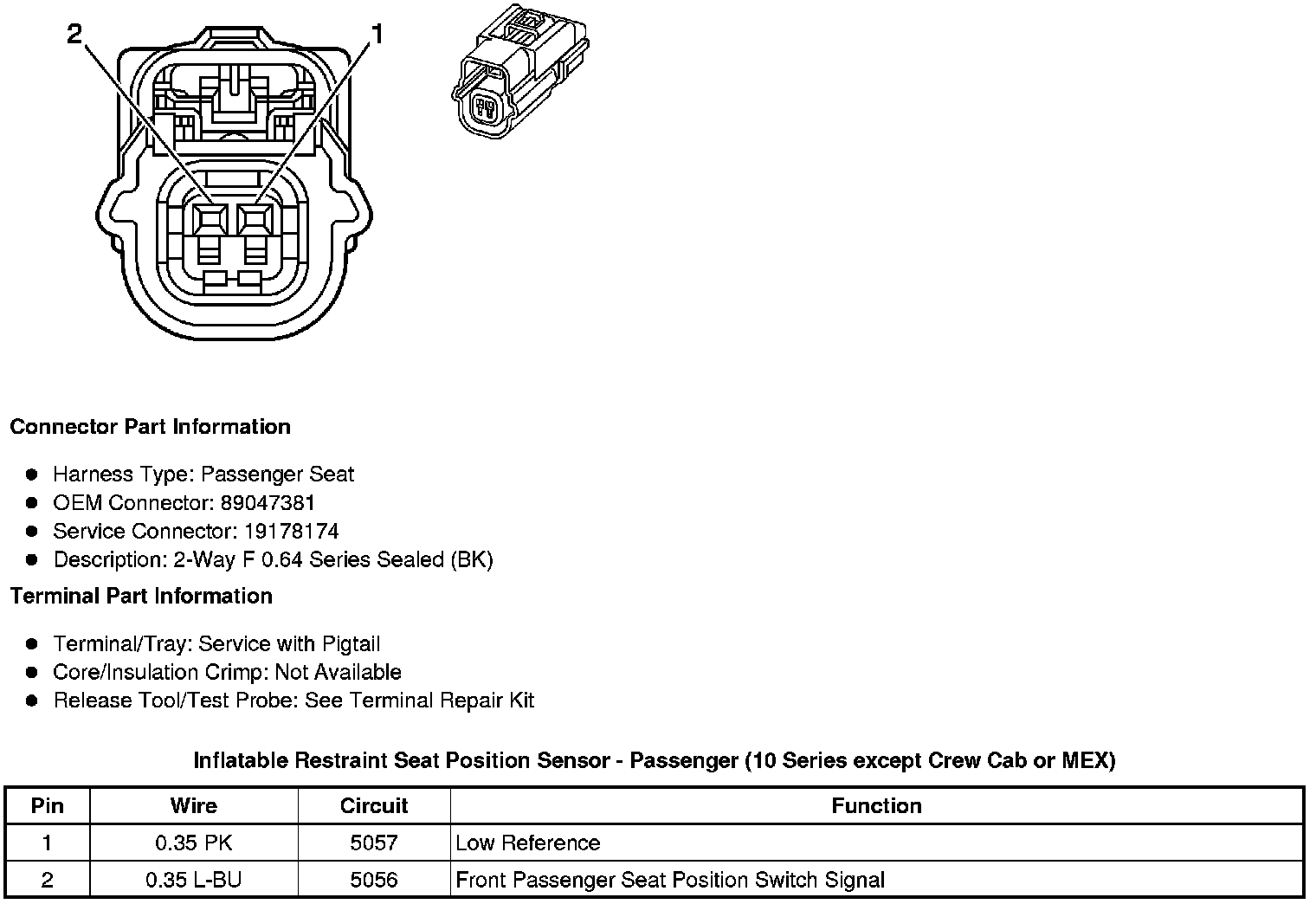 Inflatable Restraint Seat Position Sensor - Passenger (10 Series except Crew Cab or MEX)
