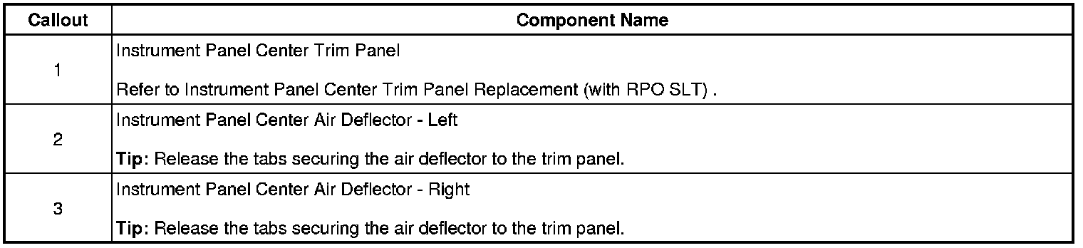 Instrument Panel Center Air Outlet Replacement (With RPO SLT)