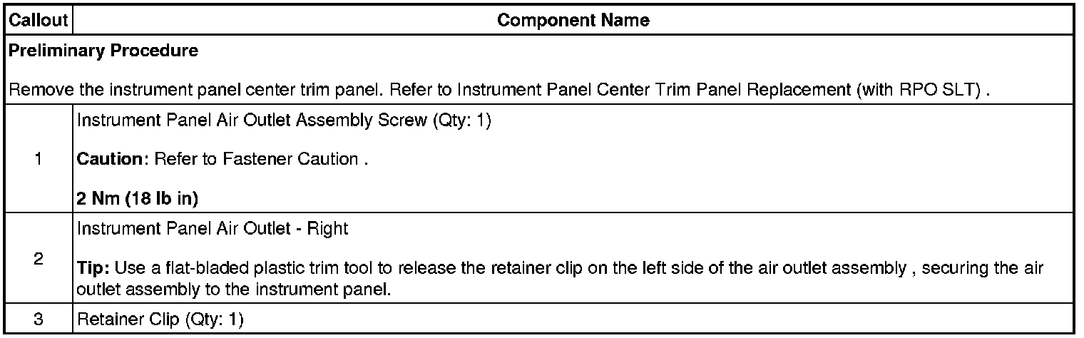 Instrument Panel Outer Air Outlet Replacement - Right Side (With RPO SLT)