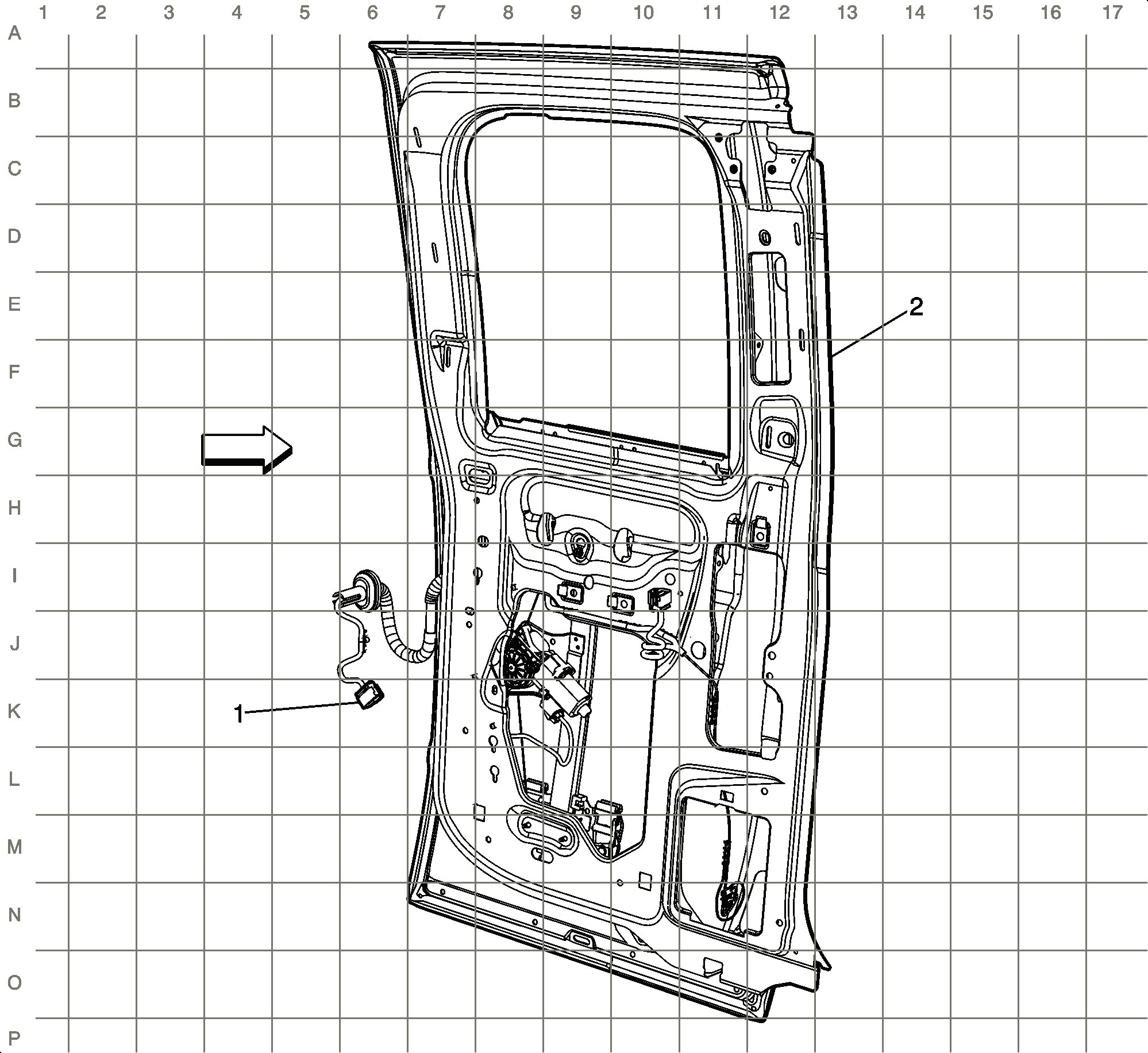 Left Rear Door Harness Routing (Extended Cab)